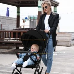 Ding Vivo Wandelwagen – Beige/Rose – Inklapbare Buggy – Inclusief Boodschappenmandje En Zonnekap