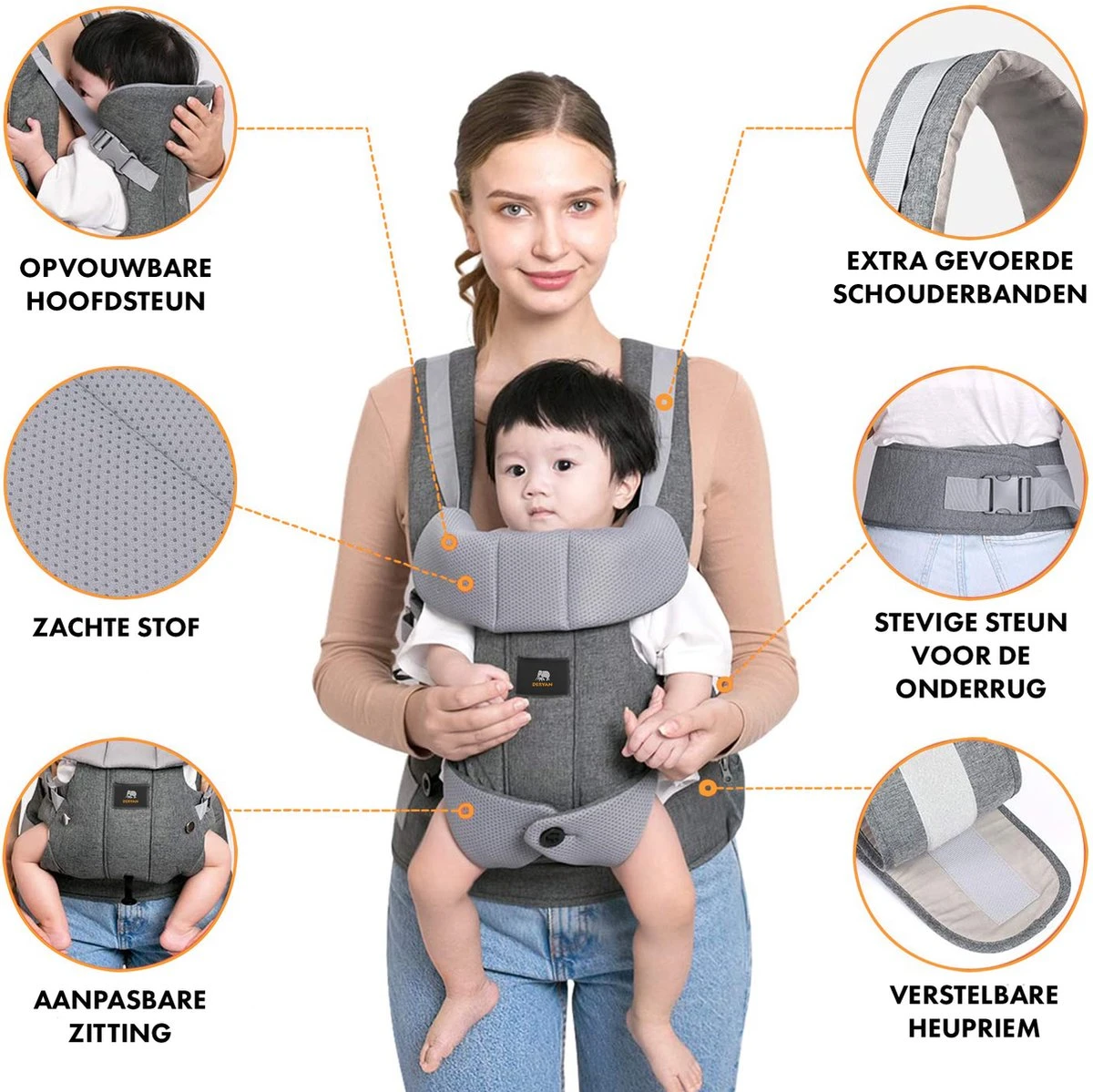 Deryan Ergonomische Draagzak – Buikdrager 2-in-1 Antraciet