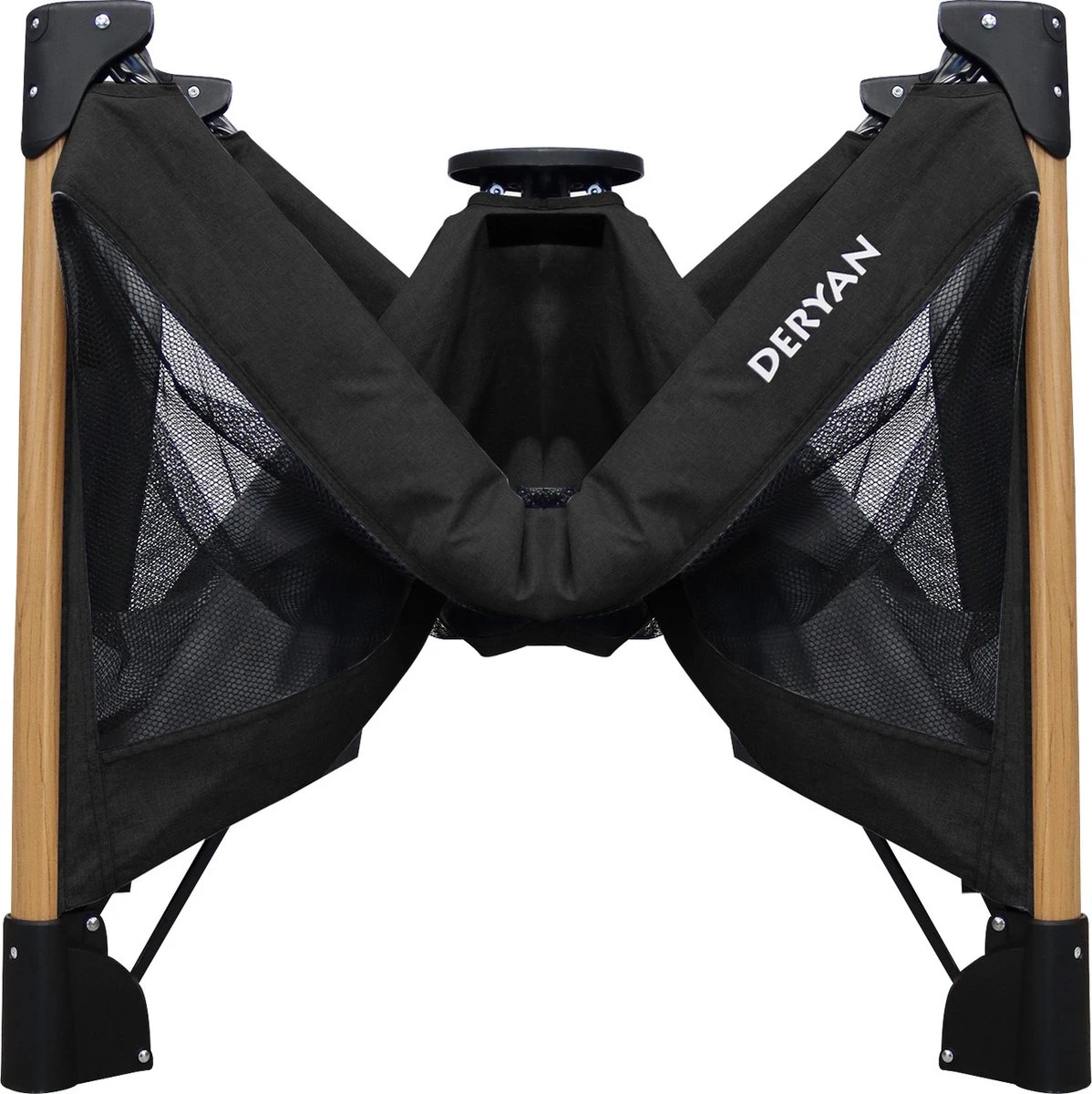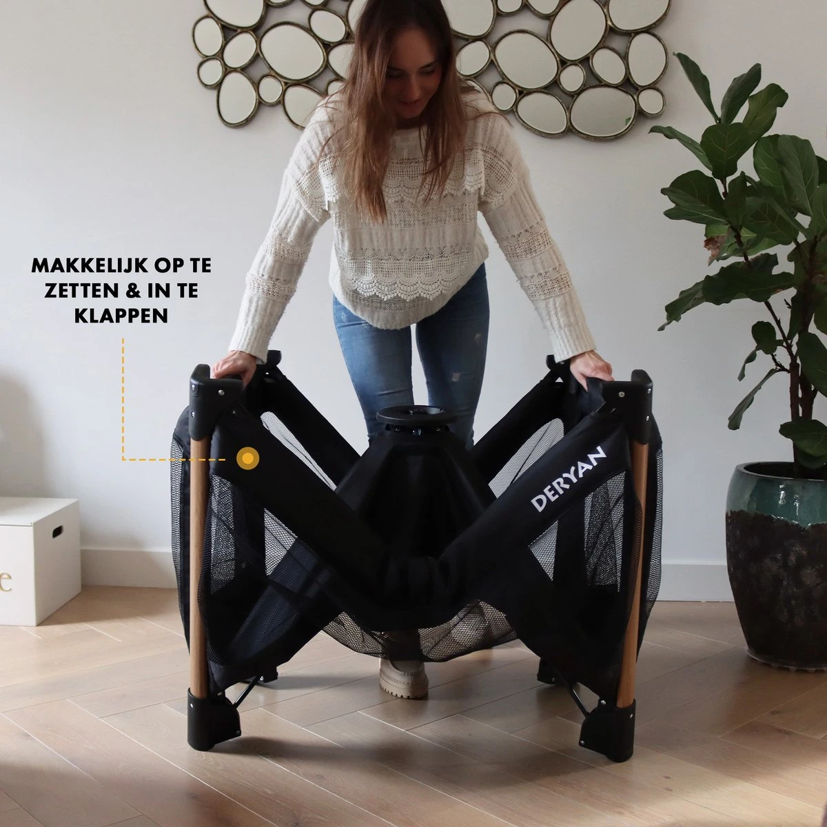Deryan Luxe Campingbed Compleet – 120x60cm – Bodemverhoger – Verschoonblad – Opbergmand – Zwart