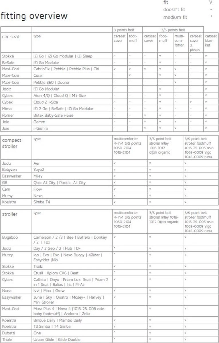 - Controleer onze ‘fitting overview’ om te kijken of de voetenzak geschikt is voor jouw buggy