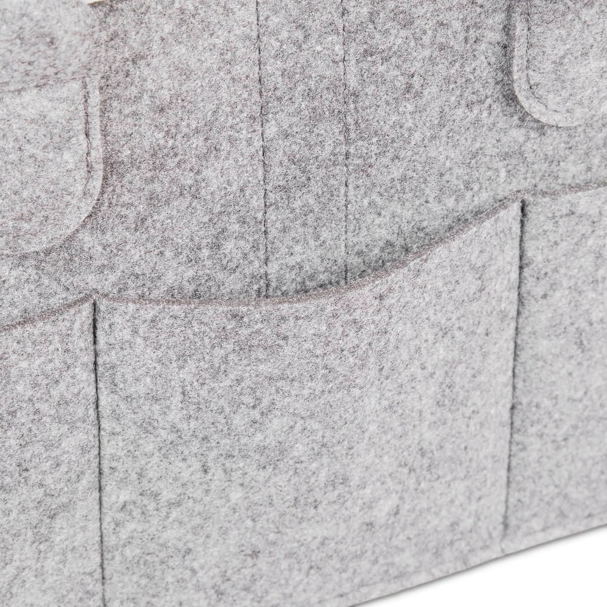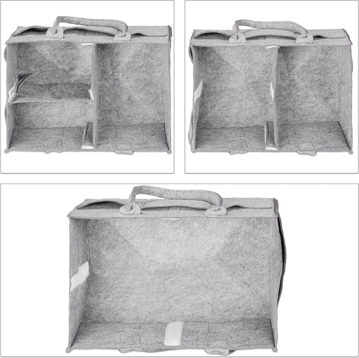 Verschillende baby accessoires kunnen in de vilten luiertas overzichtelijk en grijpbaar opgeborgen worden. 11 vakken bieden genoeg ruimte voor luiers, doekjes, flessen en crèmes voor baby‘s. De grootte van de binnenkant van de verzorgingstas kan je dankzij de uitneembare schotjes naar wens aanpassen. De luiertas kan goed gedragen worden dankzij de 2 hengsels. Hierdoor is hij ook perfect als kofferbak organizer in de auto of als mooie vilttas voor in de woonkamer.