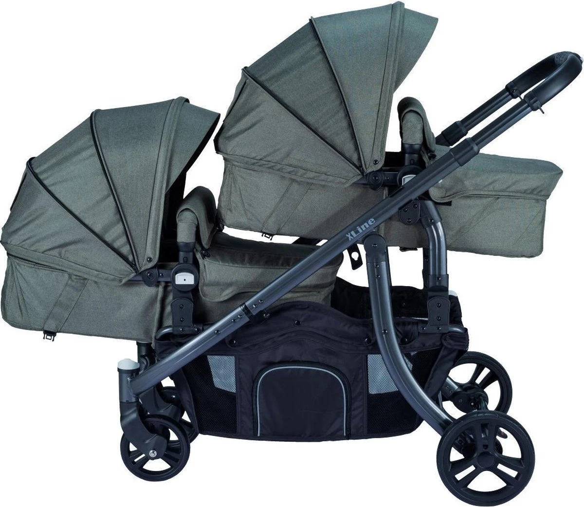 Bij de X Adventure Xline Duo Kinderwagen is er de optie om 1 of 2 autostoelen (groep 0+) op het frame te plaatsen. De autostoeltjes zijn apart te bestellen.